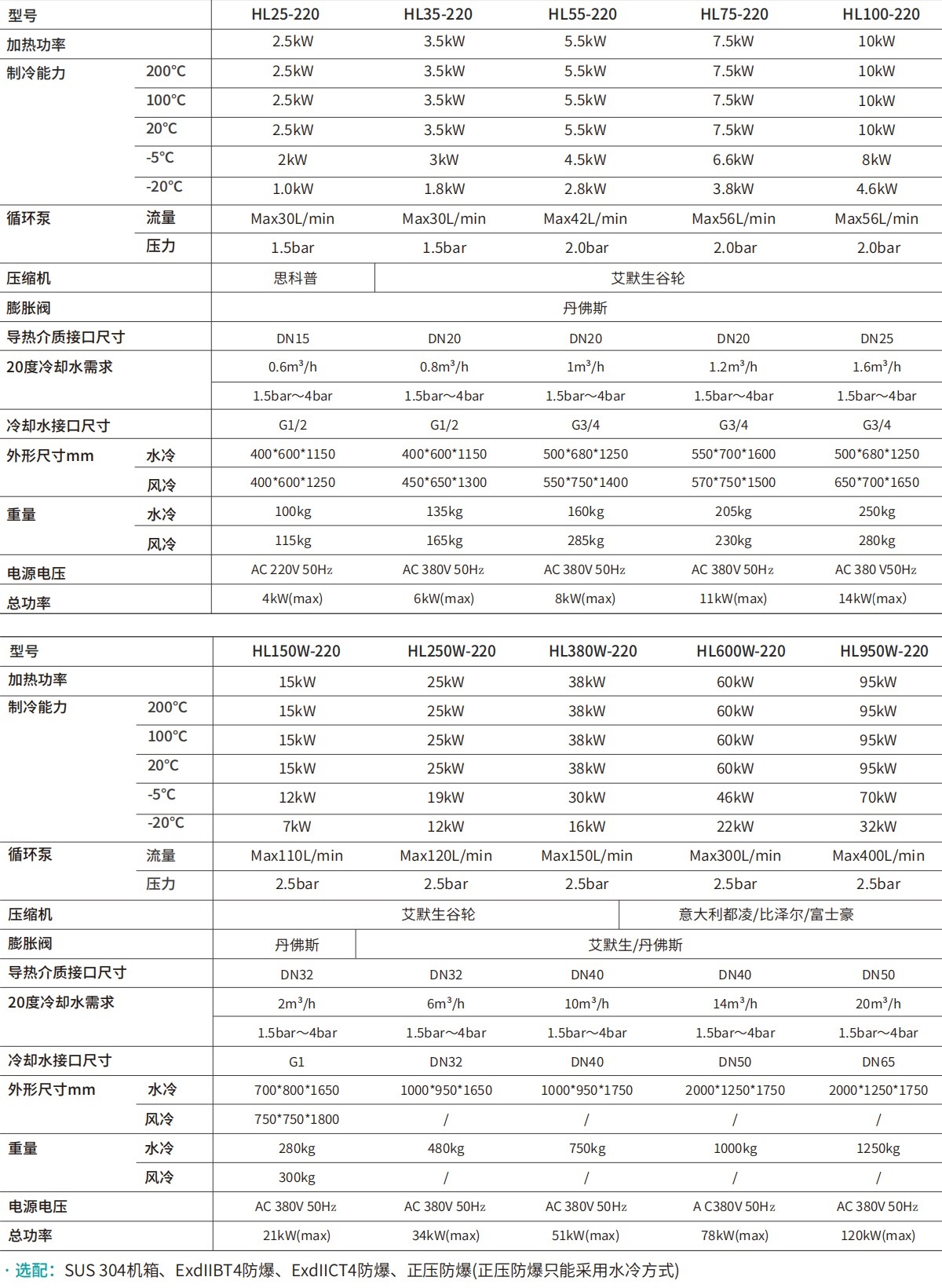 | 200℃ | 100℃ | 20℃ | -5℃ | -20℃ | 流量 | 壓力 | 水冷 | 風(fēng)冷 | 水冷 | 風(fēng)冷 | ||||||||||
